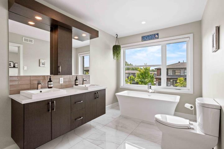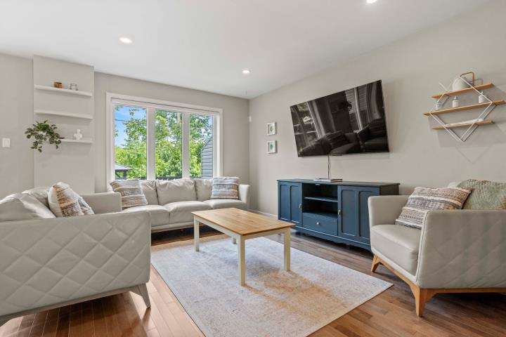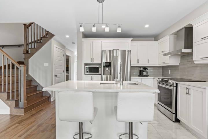 This move-in ready townhome, built in 2018 with key upgrades and finishings, checks all the boxes. The bright main floor features open-concept living and dining, a chef's kitchen with quartz counters and extended island, plus main floor laundry. Upstairs, enjoy a stylish bathroom with separate soaker tub, double vanity and three generous-sized bedrooms. The finished basement adds a full bath and flexible living space. Outside, a private fenced yard with deck, pave uni patio, and no rear neighbours awaits. Ideally located near schools, shops, parks, and golf courses. Book your visit today!