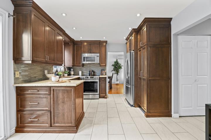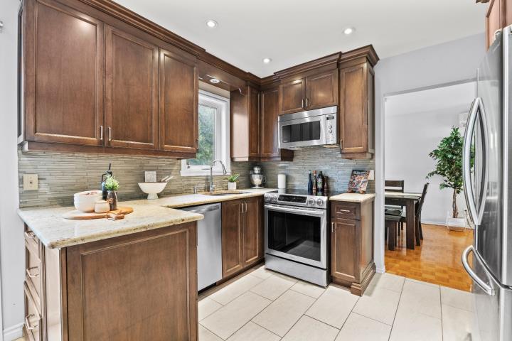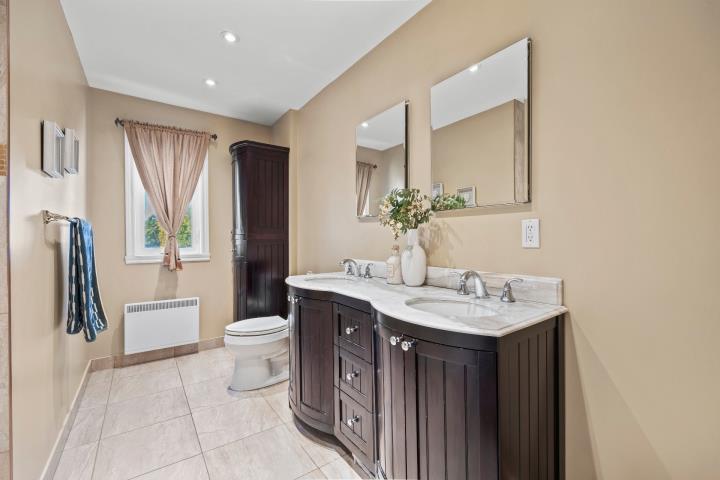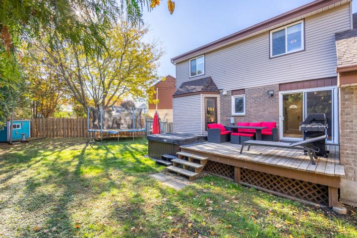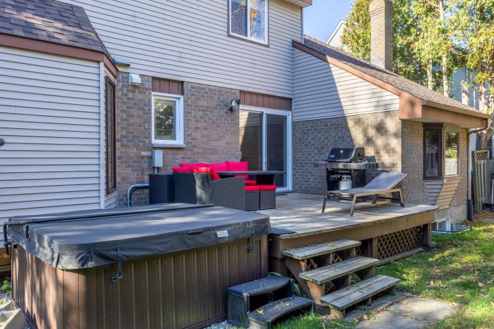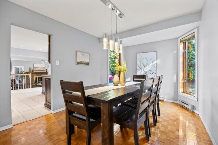 Bright, spacious and thoughtfully updated, this home offers everyday comfort and functionality. The main floor features open living and dining areas, an updated kitchen and a cozy sunken family room. Upstairs, 4 generous bedrooms and a renovated bathroom await its next family. The finished basement includes a 5th bedroom or office and a 2nd full bath with plenty of room for entertaining. Outside, enjoy a private cedar-lined yard with deck and spa. Ideally located near parks, community pool, tennis courts, schools, the REM and Hwy 40. Book your visit today!