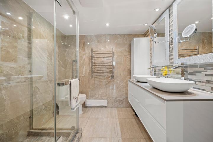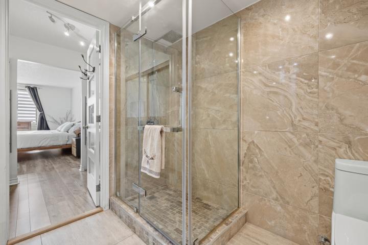 Renovated 3-bedroom ground-floor corner condo across from Lac St-Louis! Bright living room with electric fireplace and large balcony, primary suite with his & hers closets and spa-like ensuite, plus 2 bedrooms and family bath with washer/dryer. Private and accessible location with building amenities: indoor pool, sauna & hot tub, gym, outdoor pool, garage parking and locker. Steps to parks, bike trails, and the water, with easy access to Hwy 20 and Trudeau Airport--ideal for comfort, convenience, and lifestyle.